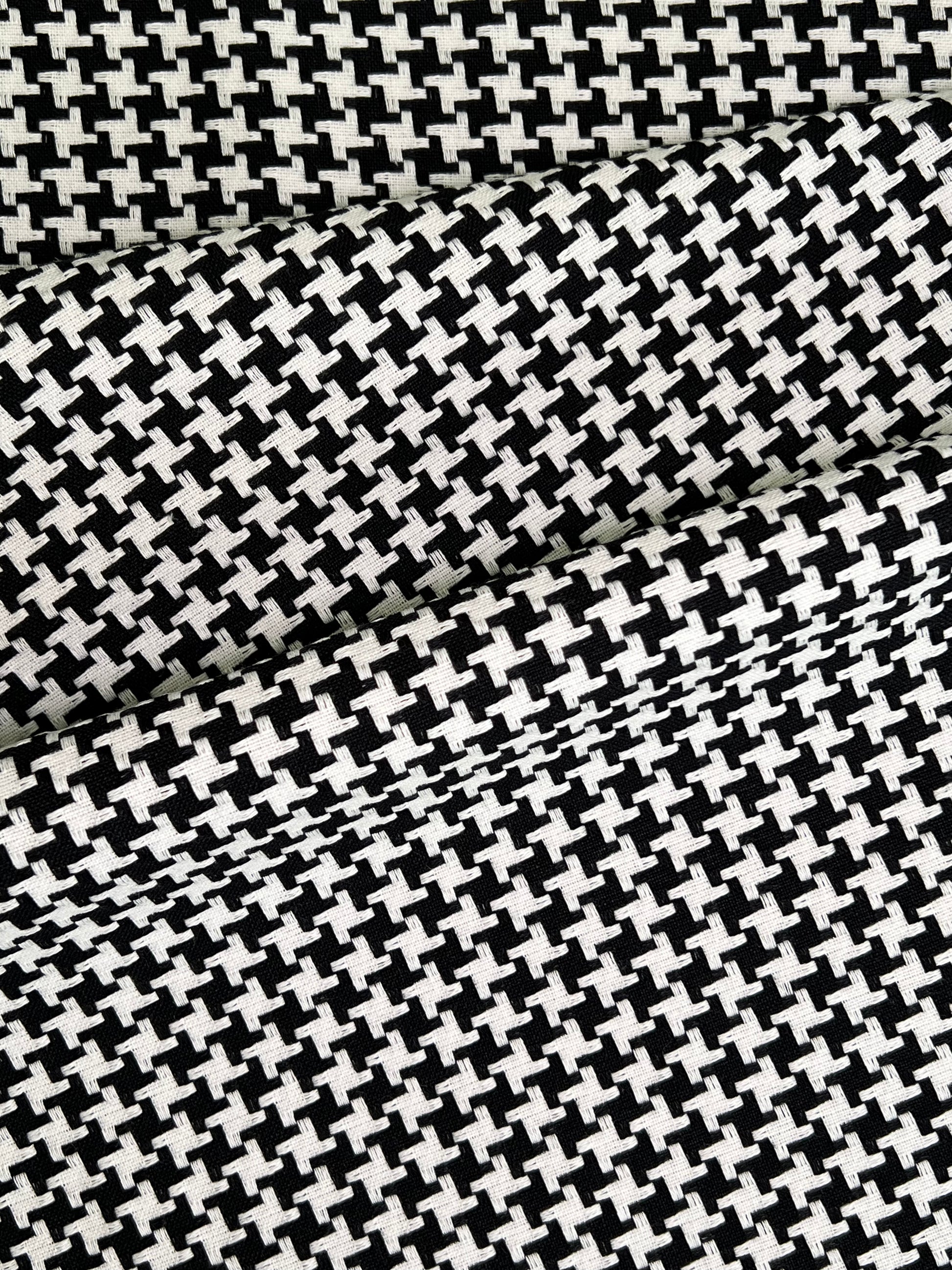Pied de Poule é um tecido 100% algodão com a clássica padronagem reinterpretada de forma suave e contemporânea. Seu desenho geométrico característico, formado por pequenos motivos repetidos, cria um efeito visual sofisticado e atemporal, trazendo elegância e personalidade ao ambiente.